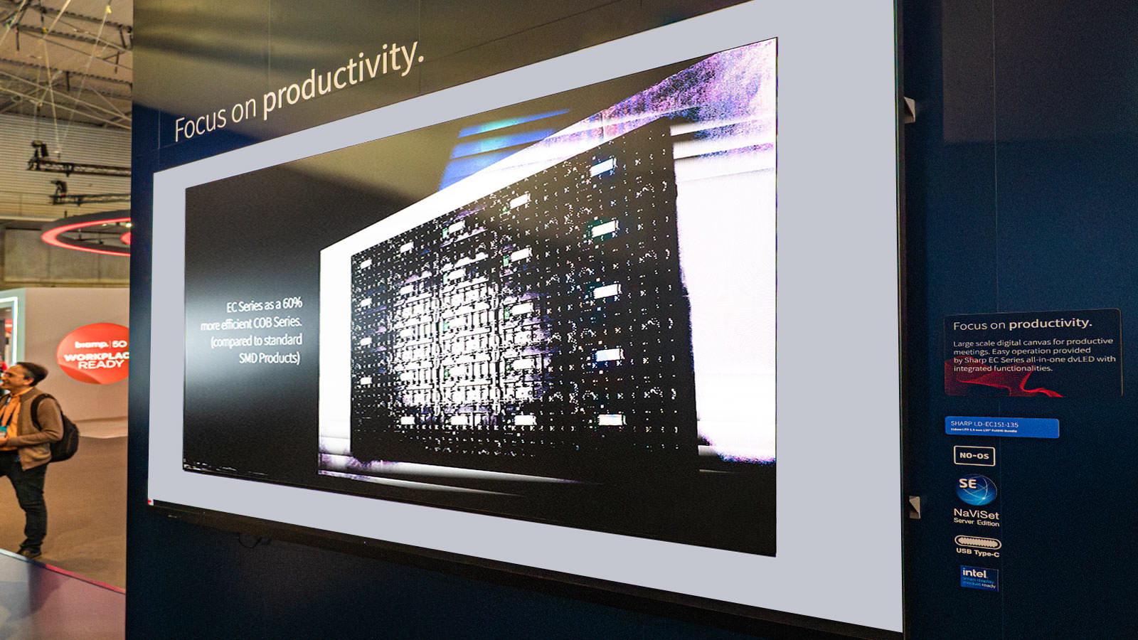 In Hall 3, we caught up with Kate Butcher on the Sharp stand who talked us through the newly launched EC Series dvLED displays. Available in pixel pitches from 0.9 to 1.8, the EC Series offers an accessible route into dvLED across commercial, retail, education, and leisure environments. A redesigned cabinet significantly improves installation time, while COB technology helps reduce energy usage without compromising brightness or reliability.