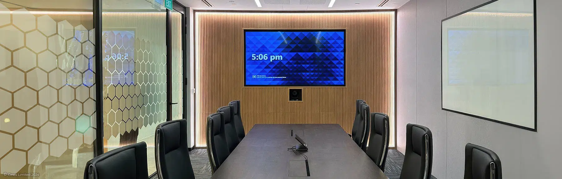 Additionally, to cater to breakout sessions and impromptu collaboration, Cinos equipped the three smaller meeting rooms with 55” Samsung displays and HDMI presentation ports. This setup allows users to swiftly initiate meetings and share content, fostering efficient and productive collaboration sessions.